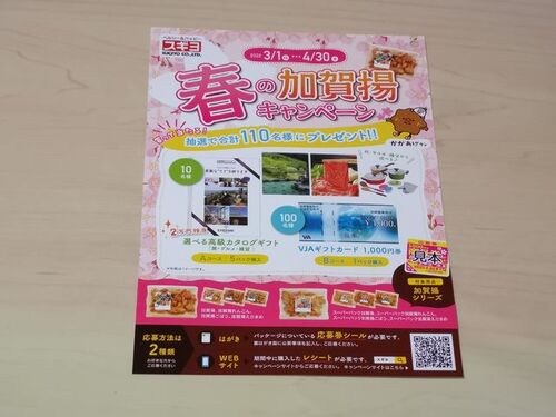 見つけた全国版の懸賞ハガキです。 スギヨ 春の加賀揚キャンペーン Aコース:選べる高級カタログギフト(2万円相当)×10名 Bコース:VJAギフトカード1,000円券×100名 キャンペーン期間:2020年3月1日(日)~4月30日(木) 応募締切:2020年4月30日(木)当日消印…