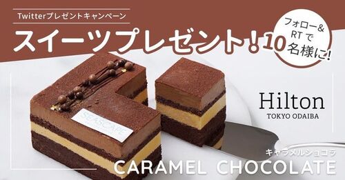 Cake.jp の公式Twitterアカウントで行われているキャンペーンをご紹介! Twitterプレゼントキャンペーン 画像出典:Cake.jp@ケーキ通販 (@iiicakejp) | Twitter 【賞品】 【Cake.jp限定】ヒルトン東京お台場メイドの贅沢スイーツキャラメルショコラ×10名 【…