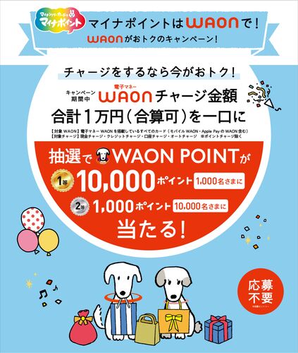 WAONで行われている『電子マネーWAONチャージキャンペーン』をご紹介! 電子マネーWAONチャージキャンペーン 画像出典:WAON 【賞品】 1等:10,000 WAON POINT×1,000名 2等:1,000 WAON POINT×10,000名 【キャンペーン期間】 2022年1月6日(木)~1月30日(日) …