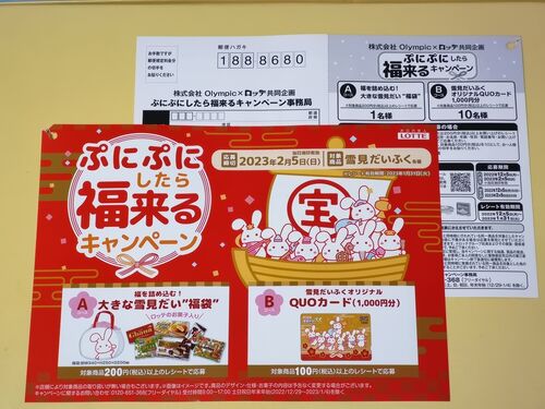 Olympicとロッテのタイアップで行われている『ぷにぷにしたら福来るキャンペーン』をご紹介! Olympic×ロッテ ぷにぷにしたら福来るキャンペーン 【賞品】 Aコース:福を詰め込む!大きな雪見だい“福袋“×1名 Bコース:雪見だいふくオリジナルQUOカード1,00…