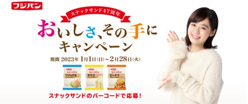 フジパンで行われている『スナックサンド47周年 おいしさ、その手にキャンペーン』をご紹介! スナックサンド47周年 おいしさ、その手にキャンペーン 画像出典:フジパン 【賞品】 Aコース:ソニー ワイヤレスポータブルスピーカー SRS-XB23ブラック×100名 …