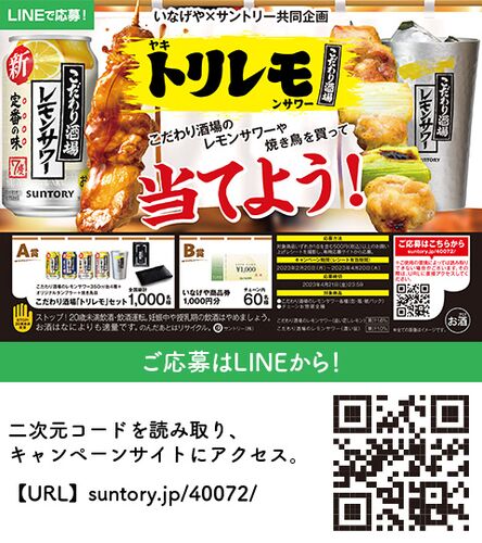 いなげやとサントリーのタイアップで行われている『「トリレモ」当てよう!キャンペーン』をご紹介! いなげや×サントリー 「トリレモ」当てよう!キャンペーン 画像出典:スーパーマーケット いなげや 【賞品】 〈対象チェーン店共通〉 こだわり酒場「トリ…