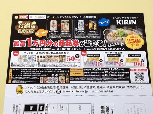 オーケーとミツカン・キリンビールのタイアップで行われている『お鍋に合うのはビール?チューハイ?最高1万円分の商品券が当たる!キャンペーン』をご紹介! オーケー×ミツカン・キリンビール お鍋に合うのはビール?チューハイ?最高1万円分の商品券が当た…