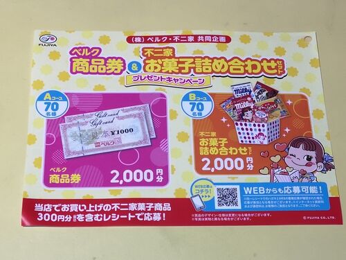 ベルクと不二家のタイアップで行われている『商品券&不二家お菓子詰め合わせセット プレゼントキャンペーン』をご紹介! ベルク×不二家 商品券&不二家お菓子詰め合わせセット プレゼントキャンペーン 【賞品】 Aコース:ベルク商品券2,000円分×70名 Bコ…