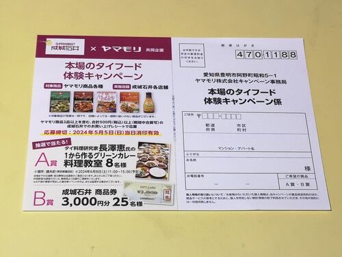 成城石井とヤマモリのタイアップで行われている『本場のタイフード体験キャンペーン』をご紹介! 成城石井×ヤマモリ 本場のタイフード体験キャンペーン 【賞品】 A賞:タイ料理研究家 長澤恵氏の1から作るグリーンカレー料理教室×8名 B賞:成城石井商品券3…