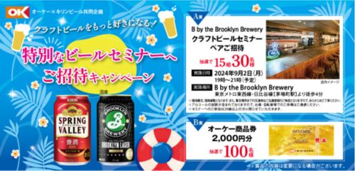 オーケーとキリンビールのタイアップで行われている『クラフトビールをもっと好きになる! 特別なビールセミナーへご招待キャンペーン』をご紹介! オーケー×キリンビール クラフトビールをもっと好きになる! 特別なビールセミナーへご招待キャンペーン 画…