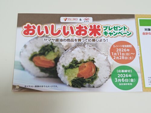 ヤオコーとヤマサ醤油のタイアップで行われている『ごはんのおいしさ実感キャンペーン』をご紹介! ヤオコー×ヤマサ醤油 ごはんのおいしさ実感キャンペーン 【賞品】 宮城県栗原市産つや姫JA新みやぎ 5kg×150名 【レシート有効期間】 2025年1月12日(日)~2月…