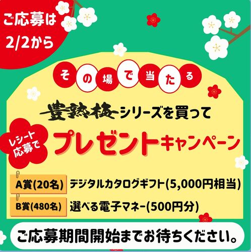 中田食品で行われている『LINEから当たる!豊熟梅レシートキャンペーン』をご紹介! 中田食品 LINEから当たる!豊熟梅レシートキャンペーン 画像出典:中田食品公式LINEアカウント 【賞品】 A賞:デジタルカタログギフト(5,000円相当)×20名 B賞:選べる電子…