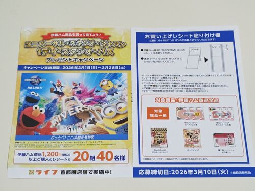 ライフ首都圏と伊藤ハムのタイアップで行われている『伊藤ハム商品を買って当てよう!ユニバーサル・スタジオ・ジャパン 1デイ・スタジオ・パス プレゼントキャンペーン』をご紹介! ライフ首都圏×伊藤ハム 伊藤ハム商品を買って当てよう!ユニバーサル・ス…