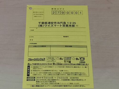 2019年7月1日(月)から、ワイズマートとパンメーカー7社のタイアップで行われているキャンペーン「フルーツパンフェア」をご紹介! フルーツパンフェア 【賞品】 A賞:JTB旅行券20,000円分×5名 B賞:ワイズマートお買物券2,000円分×20名 【応募期間】 2019…