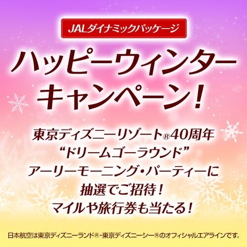 日本航空で行われている『JALダイナミックパッケージ ハッピーウィンターキャンペーン!』をご紹介! JALダイナミックパッケージ ハッピーウィンターキャンペーン! 画像出典:JAL企業サイト 【賞品】 A賞:東京ディズニーリゾート®40周年“ドリームゴーラウ…