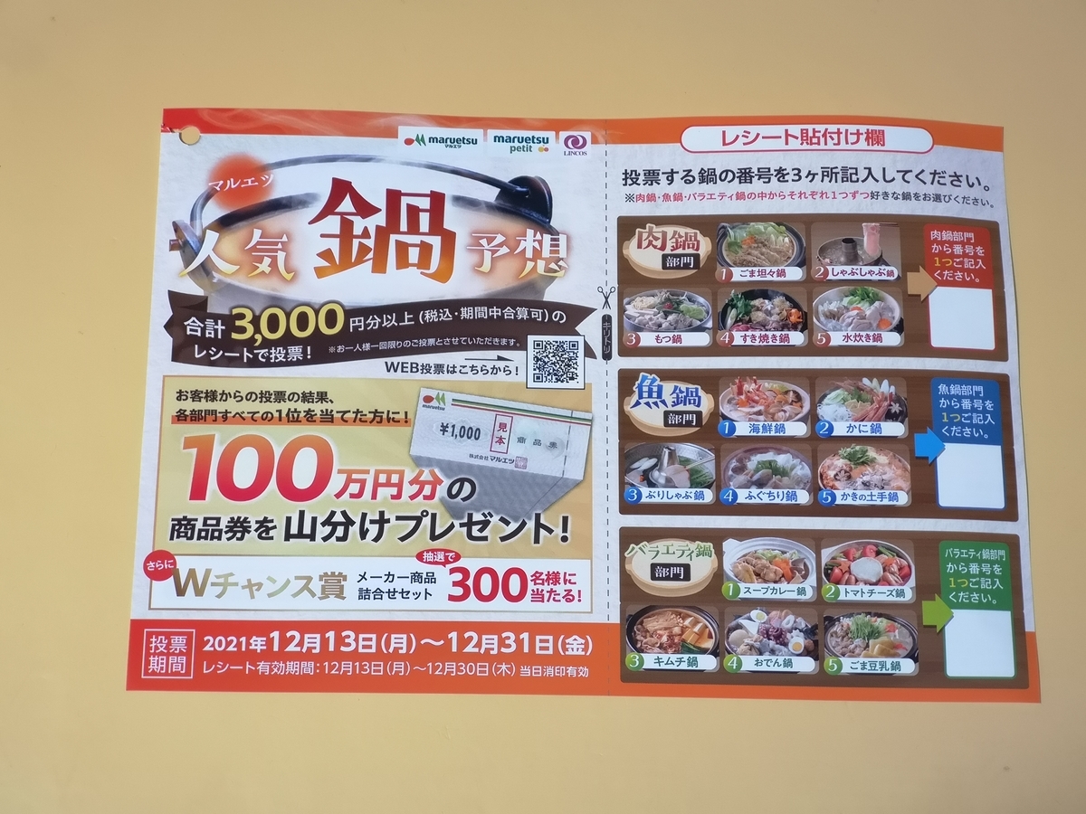 このキャンペーンって、自分の好きな鍋に投票するよりも、人気の鍋を予想して応募するキャンペーンですね(^^;