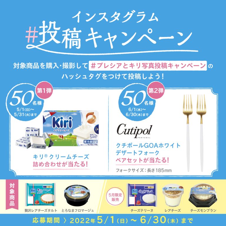 プレシア公式Instagramアカウントとキリ公式Instagramアカウントをフォローの上、『#プレシアとキリ写真投稿キャンペーン』のハッシュタグを付け、購入した対象商品の写真を投稿して応募。