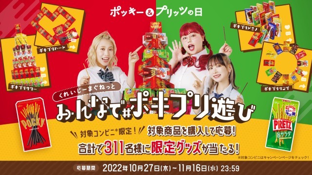 コンビニ限定で、江崎グリコで行われている『みんなで#ポキプリ遊びキャンペーン』をご紹介!