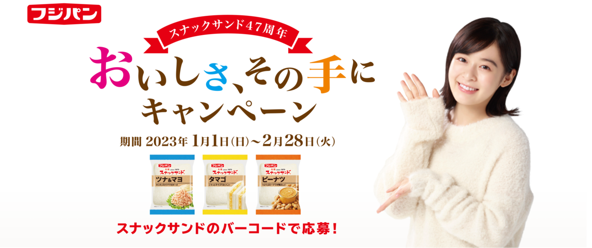 フジパンで行われている『スナックサンド47周年 おいしさ、その手にキャンペーン』をご紹介!