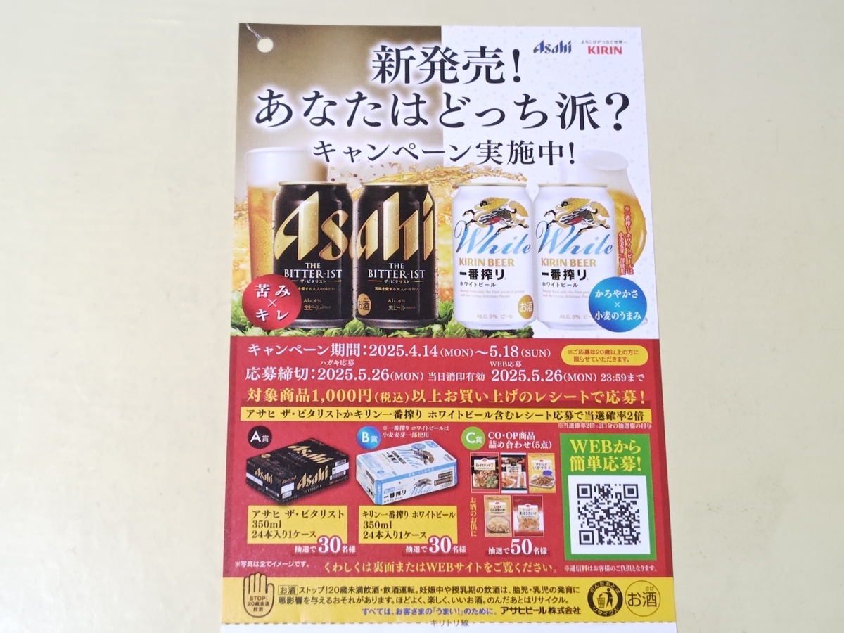 コープデリとアサヒビール・キリンビールのタイアップで行われている『新発売!あなたはどっち派?キャンペーン』をご紹介!