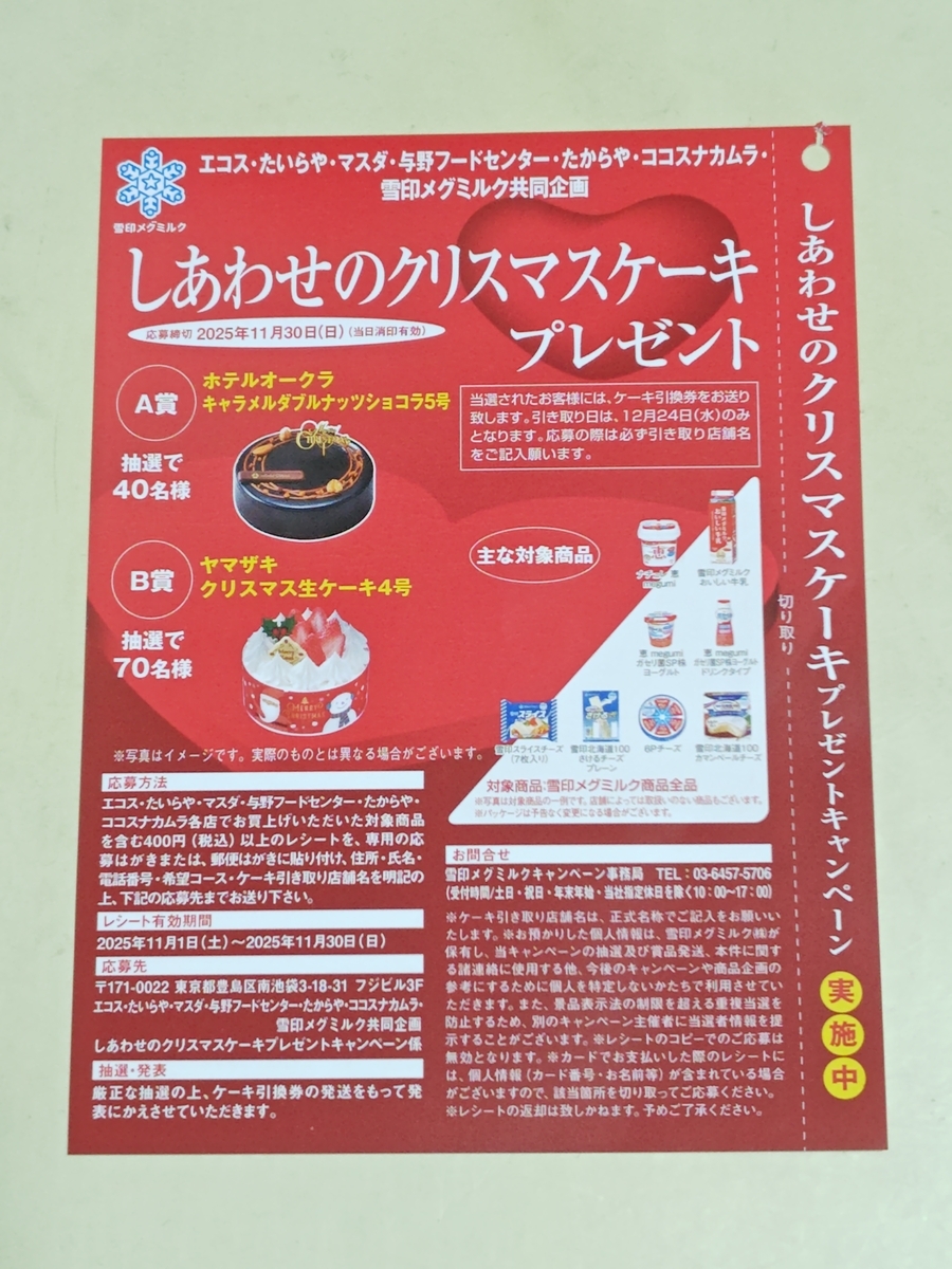 エコスグループと雪印メグミルクのタイアップで行われている『しあわせのクリスマスケーキプレゼントキャンペーン』をご紹介!