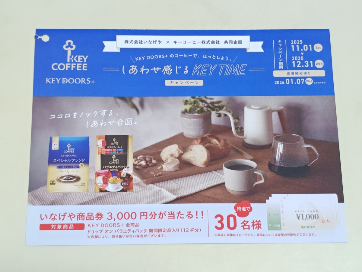 いなげやとキーコーヒーのタイアップで行われている『しあわせ感じるKEY TIMEキャンペーン』をご紹介!